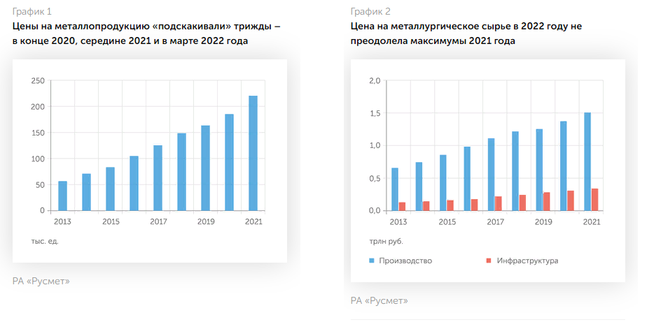 Финансовый директор Кыштымского машиностроительного объединения (производитель горно-шахтного оборудования и бурового инструмента, входит в группу «Канекс») Марина Швейкерт отслеживает цены на металл: «Мы не крупное предприятие. У нас чуть больше миллиарда выручка, шестьсот работающих… Но мы делаем металлоемкую продукцию. И цена в зависимости от номенклатуры на металлопрокат выросла от двух до двух с половиной раз. Так что мы сейчас работаем, если смотреть по полной себестоимости, практически в ноль».