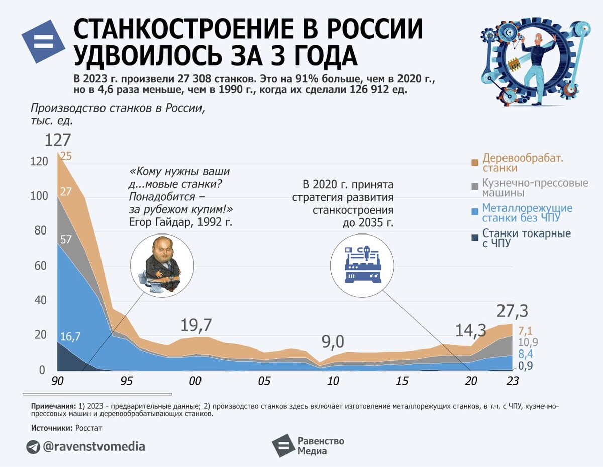 Крайне показательно, что "эффективные менеджеры" только в последние два года новой экономической реальности внезапно выяснили, что станкостроение в России фактически уничтожено и его нужно возрождать, параллельно готовая десятки тысяч высококвалифицированных специалистов.