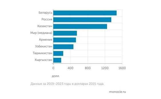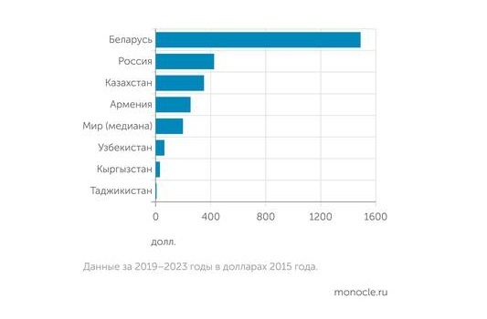 Впрочем, если взглянуть на уровень развития машиностроения и обрабатывающей промышленности удельно, то есть на одного жителя страны, то в год в России создается 1344 доллара добавленной стоимости во всей обрабатывающей промышленности, что уже сопоставимо с Белоруссией — 1470 долларов (в ценах 2015 года, данные ЕАБР).