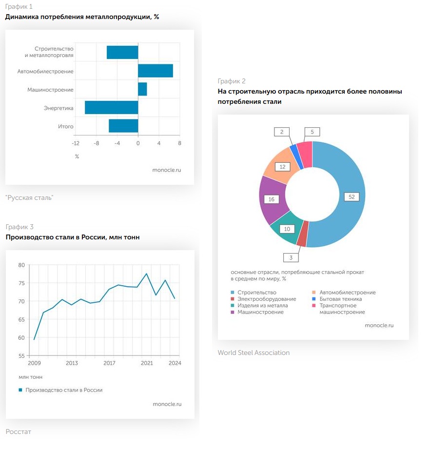 В «Русской стали» также ожидают в 2025 году дальнейшего снижения металлопотребления в стране не менее чем на 5%. Причина тому, уверены в ассоциации, — давление высоких процентных ставок, спад в строительстве и машиностроении, сдвиг реализации инфраструктурных проектов в энергетике.