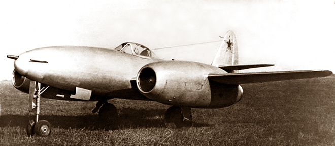 В эпоху реактивных самолетов КБ Сухого вступило с машиной Су-9 (1946 год) с двумя трофейными немецкими двигателями Jumo-004 (РД-10) под крылом. Катапультируемое сиденье летчика, тормозной парашют, гидроусилители системы управления — вот лишь некоторые новаторские для советской техники идеи, воплощенные в Су-9.