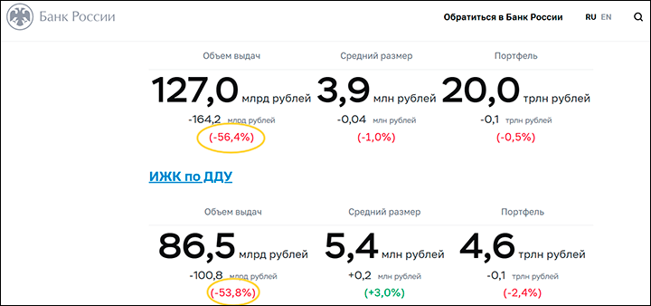 Главный драйвер той самой строительной отрасли, которая является основным потребителем продукции металлургов, — ипотека. Количество новых квадратных метров находится в прямой зависимости от того, какой процент жителей России готовы влезть в долговую удавку на десятилетия ради решения жилищного вопроса. Ведь спрос рождает предложение, а не наоборот. А ипотека в нашей стране тоже валится в пропасть. В 2025 году, по данным Банка России, объём выдачи новой ипотеки рухнул на 56,4% и на 53,8% — ипотеки по договорам долевого участия (ДДУ).