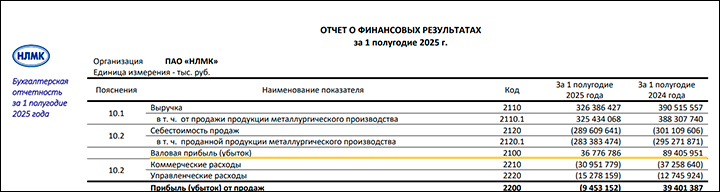 И тогда мы не без удивления констатировали, что прибыли гиганта воистину огромны: выручка "Северстали" в 2024 году достигла просто заоблачных 829,8 млрд рублей. А что же в 2025-м? Картина уже совершенно иная. Согласно отчётности компании, по итогам первого полугодия 2025-го чистая прибыль по МСФО составила 36,7 млрд рублей (было 81,8 млрд), рухнув сразу на 55% год к году. То есть более чем наполовину.