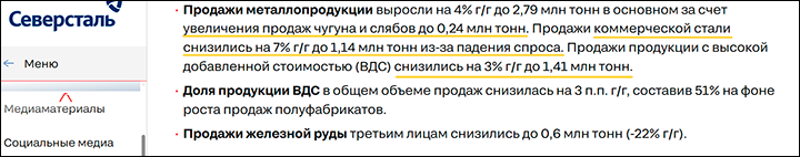 И правда, если посмотреть на выкладки по производству той же "Северстали", то мы обнаружим, что во втором квартале 2025 года за счёт роста продаж слябов компания даже нарастила общие продажи металлоконструкций на 4%. То есть стали гнать больше изделий низкого передела. А вот продажи коммерческой стали снизились из-за падения спроса (ясное дело), как упали и объёмы выпуска продукции с высокой добавленной стоимостью.
