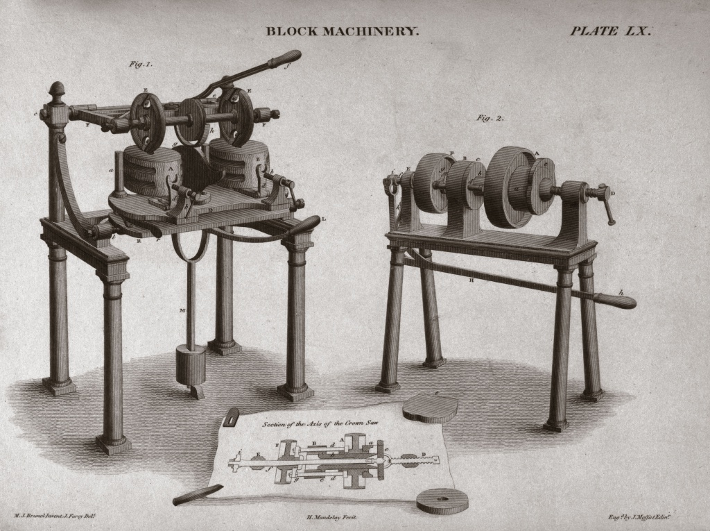 Флот тогда был парусным. Паруса управлялись системой канатов, пропущенных через блоки. В начале XIX века только для британского военного флота требовалось более 130 тысяч блоков в год. Потребность в таком количестве однотипной продукции могло удовлетворить только массовое производство.