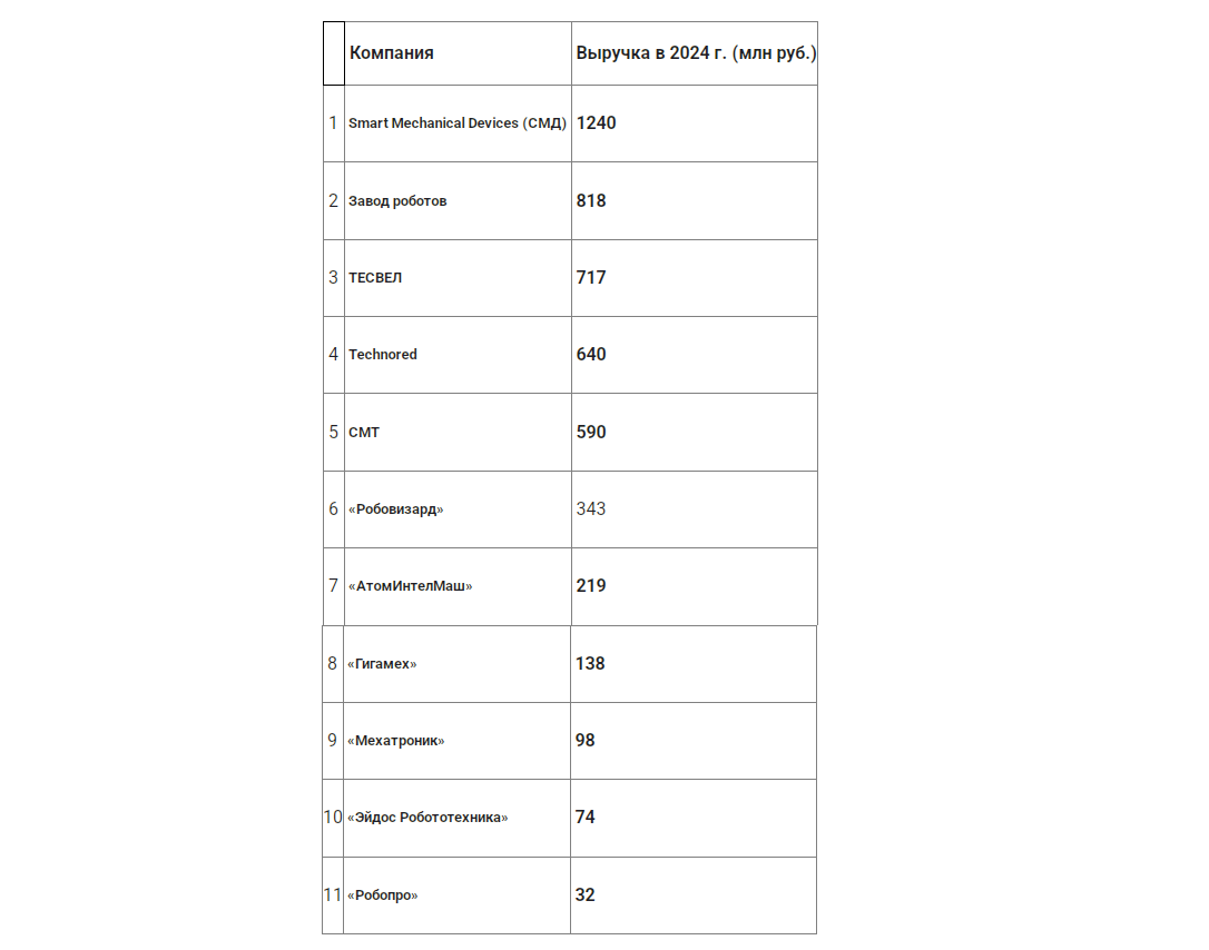 ОСНОВНЫЕ УЧАСТНИКИ РОССИЙСКОГО РЫНКА ПРОИЗВОДИТЕЛЕЙ ПРОМЫШЛЕННЫХ РОБОТОВ
