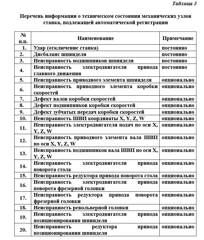 4. В модуле автоматического сбора информации о техническом состоянии механических узлов станка
