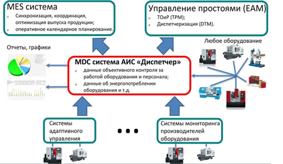 - учет и обработку разнообразной информации о производственном использовании оборудования с ЧПУ;