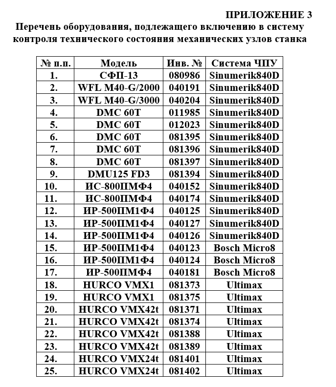 механических узлов на особо ответственном оборудовании, представленном в приложении 3.