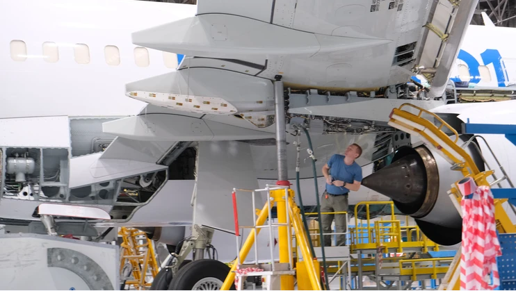 - Панели фюзеляжа и хвостовое оперение также производят в Ульяновске, пилоны двигателей и обтекатели шасси - в Воронеже.