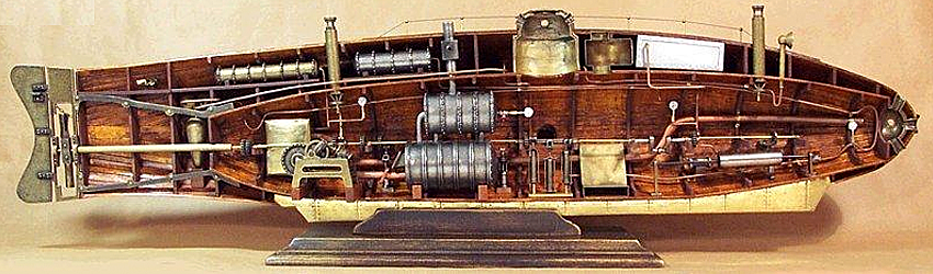 Для нового двигателя на лодке пришлось установить еще один котел, поменьше, дававший мощность две лошадиные силы. Из-за большого количества основных и вспомогательных механизмов свободное внутреннее пространство лодки ужалось до минимума, но она все-таки работала.