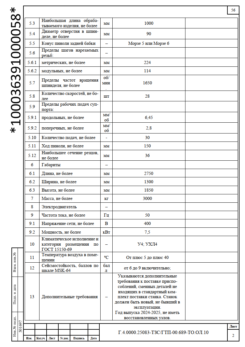 Просим Вас рассмотреть запрос на токарно-винторезный станок в соответствии с приложением (Г.4.0000.25083-ТЗС_ГТП-00.689-ТО.ОЛ.10) и предоставить ТКП на указанное оборудование.