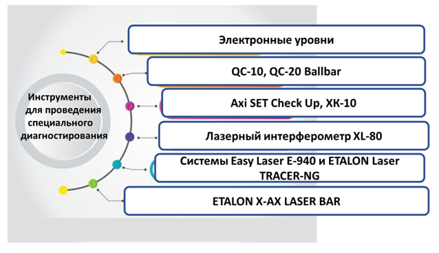При проведении специального диагностирования мы проводим проверку параметров геометрической и кинематической точности, наличия зазоров, упругих деформаций, износа направляющих и др.