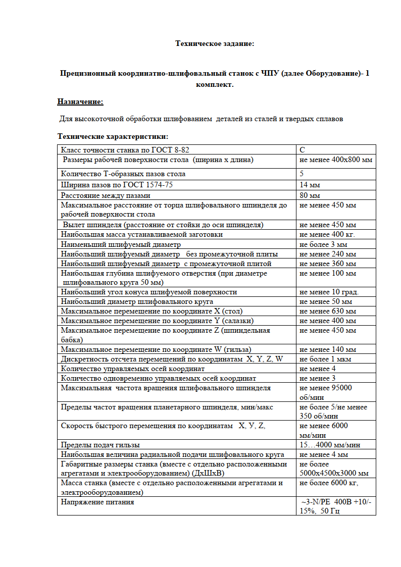 Просим направить ТКП на прецизионный координатно-шлифовальный станок c ЧПУ в кол-ве 1 шт.
