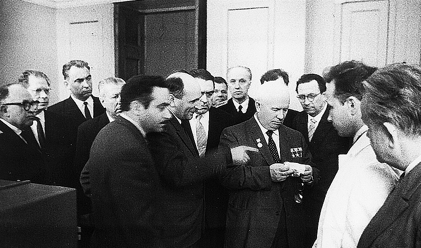 Для окончательного решения нужно было, чтобы «сошлись вместе» первый секретарь ЦК КПСС и глава правительства Никита Хрущев и микроэлектроника с демонстрацией ее преимуществ на понятном ему особо важном примере. И Шокин такую ситуацию создал. 4 мая 1962 года в Ленинграде планировалось совещание с участием Хрущева. В это время в ленинградском КБ-2 завершались разработки экспериментальных образцов управляющей ЭВМ УМ-1НХ на основе транзисторов и бортовой ЭВМ УМ-2 — первого опыта применения гибридной технологии. Специально для этого мероприятия был сделан заушный микроприемник, то есть было что показать главе государства.